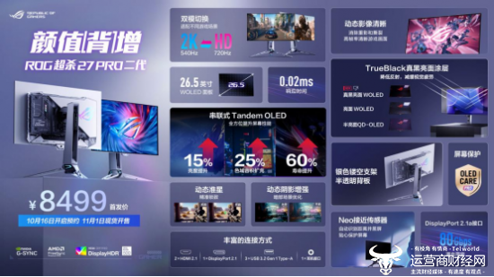 毫无疑问,ROG超杀27 Pro二代电竞显示器的超高颜值与颠覆性配置可以收获无数玩家的青睐。据悉,ROG超杀27 Pro二代电竞显示器将于10月16日20:00开启预约活动,11月1日正式现货开售,首发价为8499元!对于追求极致体验的核心玩家而言,这或许是2025年最值得投资的“上分神器”。毕竟在毫秒定胜负的电竞世界,“快人一步”可能就是“赢人一路”。