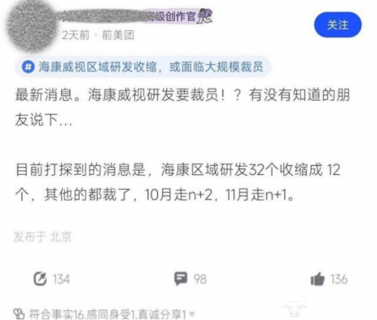 有相关媒体就此事联系海康威视,公司则回应:“公司不存在大规模裁员,是经营策略调整,需要优化总部及重点销售城市的研发力量,因此相应调整了部分区域岗位设置。“