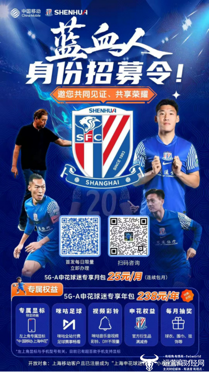 在6月17日举办的上海移动“魔速领跑 智创未来”5G-A 2.0启航发布会上,一项点燃申城蓝血人热情的战略合作正式揭幕。上海移动与上海申花足球俱乐部强强联手,共同推出创新产品“5G-A申花球迷专享包”,并同步发布“蓝血人招募令”,标志着双方在探索“体育+科技”融合创新的道路上迈出了坚实一步,为球迷带来前所未有的智慧观赛与一站式专属体验。
