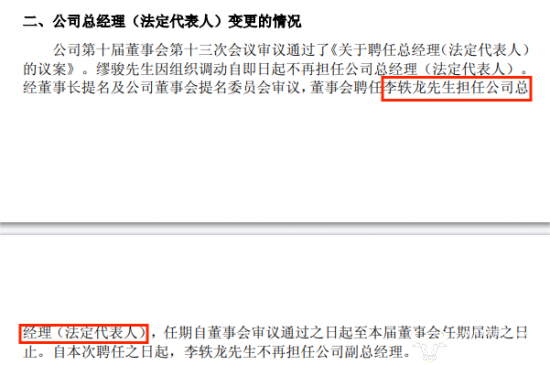 6月27日,副总裁李轶龙被聘为公司总经理。