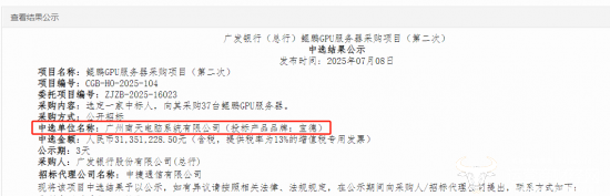7月8日,广发银行(总行)一项37台鲲鹏GPU服务器采购项目结果公布,最终赢家是谁?