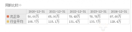 值得注意的是,在公司营收利润均下降的背景下,管理层薪酬情况也浮出水面。董事长、总经理及非独立董事沈正华的薪酬引人注目,数据显示,其2024年薪酬为87.6万元,而在2023年,沈正华的薪酬为78.78万元,同比出现上涨,不过即便上涨了,沈正华的薪酬也低于行业平均水平。