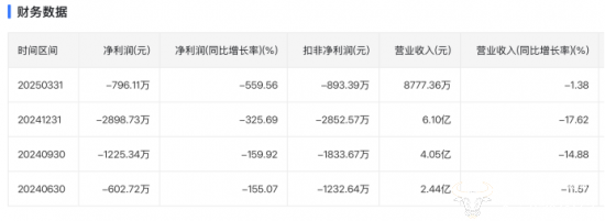 从各季度表现来看,到了2025年第一季度,形势仍不乐观,营收8777.36万元同比下降1.38%,净利润亏损796.11万元,同比大幅下降至559.56% 。