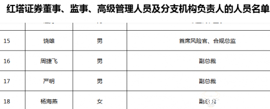 日前,运营商财经网在整理时发现,在红塔证券的官方网站上,公司首席风险官、合规总监饶雄,位列其他副总经理之前,引人关注。