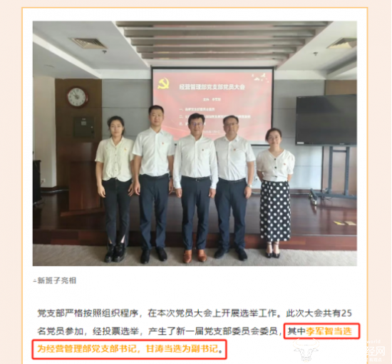 据该公众号披露,7月9日,东风汽车经营管理部党支部召开党员大会,选举李军智为经营管理部党支部书记,甘涛当选为副书记。