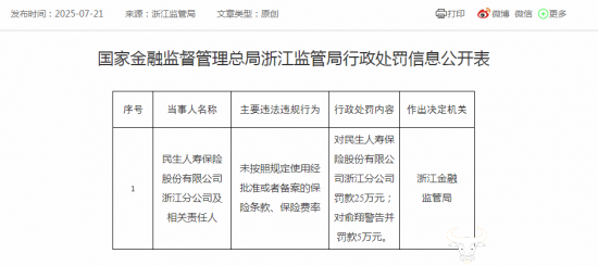 7月21日,国家金融监督管理总局浙江监管局发布了一则公告,对民生人寿保险股份有限公司(简称民生人寿),旗下的浙江分公司及相关责任人,予以行政处罚。下面,运营商财经网将对本次事件进行梳理。