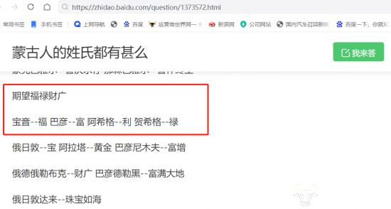 还有一种蒙古族姓氏寓意“福禄财广”,比如宝音(意思是福)、巴彦(意思是富)、贺希格(意思是禄)、俄日敦(意思是宝) 阿拉塔(意思是黄金)。