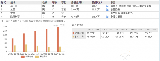 近年来的人事变动不止于此。2025年1月,元老级高管欧阳桂蓉辞去副总经理及五家子公司经理职务。作为董事长李一峰的表妹,欧阳桂蓉是薪酬仅次于李一峰的核心高管。