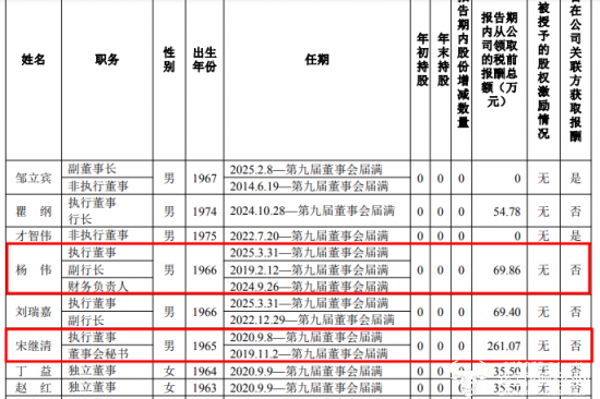 值得一提的是,据华夏银行2024年年度报告披露,杨伟在2024年的税前报酬为69.86万元,还不到时任董事会秘书宋继清薪酬261.07万元的三分之一。而今,宋继清卸任,杨伟接任其相关职务。