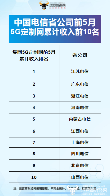 作为中国电信业务增长的新引擎之一,5G专网通过提供差异化服务,能够极大地帮助运营商拓展企业市场。那么中国电信旗下各省分公司的发展情况如何?运营商财经网试图整理出今年前5月收入排名前十的十家省公司作介绍。