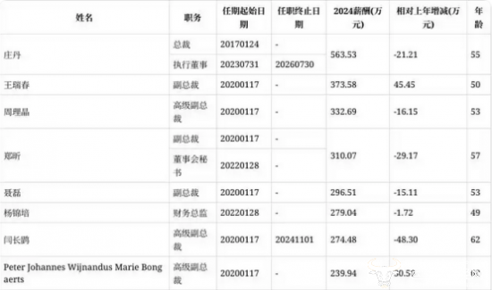 其中,总裁庄丹薪酬最高为563.53万元,而薪酬居于第二位的副总裁王瑞春为373.58万元。可见,两人排名一前一后,却有将近190万元薪酬的差距。其他高管的薪酬也远不及庄丹,基本都在230万至330万区间。