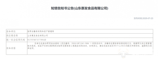 在公司业绩连续亏损的情况下,其军采资格又被暂停。据相关公告,惠发食品在参加军用食品招标采购活动中,涉嫌存在围标串标等违规行为,于7月23日起暂停其参加陆军范围物资工程服务采购活动。而这已经是惠发食品第二次被暂停军采资格了。