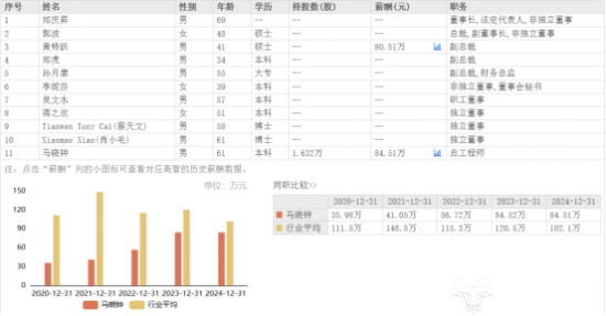而从过往财报来看,马晓钟近几年薪酬整体呈稳定增长态势。2021年,马晓钟薪酬上涨5.07万至41.05万元,2022年继续增长15.67万元,2023年进一步上涨27.8万,至84.52万元。
