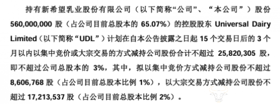 值得注意的是,在公司利润保持增长的情况下,控股股东UDL(Universal Dairy Limited)却因企业资金需求披露减持计划,拟以集中竞价或大宗交易的方式减持公司股份合计不超过2582.03万股,即不超过公司总股本的3%。这个减持比例有点惊人。