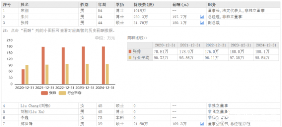 在公司去年增利不增收的背景下,公司高管薪酬基本保持稳定。张帅2024年薪酬为180.1万元,相较于2023年的180.0万元,微增了0.1万元,薪酬仅次于总经理朱川。据悉,朱川2024年薪酬为197.7万元,相较于2023年的195.1万元,上涨了2.6万元,是高管中薪酬变动幅度最大的。而董事会秘书郑世锋2024年薪酬为109.3万元,与2023年保持持平。