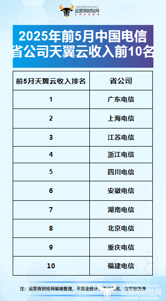 此前,运营商财经网已根据内部经营数据整理了的十家省公司,分别是广东电信、上海电信、江苏电信、浙江电信、四川电信、安徽电信、湖南电信、北京电信、重庆电信和福建电信。