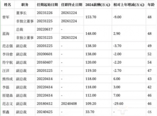 根据东方财富网显示的2024年年报来看,烽火通信共有26位高管在列,其中 共有18位董事和高级管理人员。从薪酬角度看,总裁蓝海2024年的薪酬为148万元,仅次于董事长曾军的153.7万元。虽然总裁蓝海的排名不及董事长曾军位列榜首,但他的薪酬相对上年呈现增长的趋势,一年里,蓝海薪酬增长2.9万元,而曾军薪酬下降9万元。