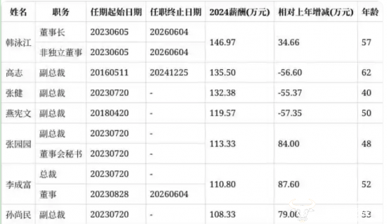 副总裁燕宪文2024年的薪酬为119.57万元,在公司高管团队中排名第四,相对于上年降薪57.35万元。