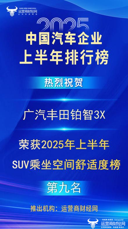 日前,众多知名车企的新车型纷纷上榜“2025年上半年SUV乘坐空间舒适度榜”。据了解,该榜单由运营商财经网独家搜索整理,以更能展示汽车内部空间的轴距数据为排名依据。广汽丰田铂智3X凭借卓越空间表现排名第九!