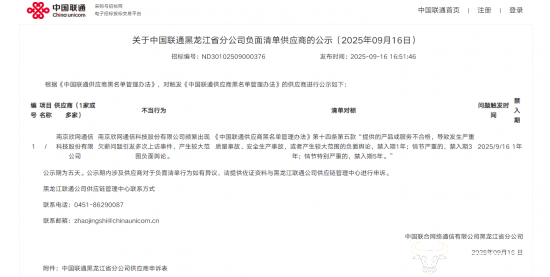 日前,中国联通采购与招标网发布“关于中国联通黑龙江省分公司负面清单供应商的公示”,哪家公司被列入了黑龙江联通黑名单?处罚严重吗?接下来运营商财经网试图揭秘。