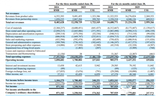 而现有门店数量中,自营门店有16968家,二季度实现收入91.36亿元,较上年同期的62.77亿元增长45.6%,加盟店有9238家,实现收入为28.67亿元,同比增长55%。