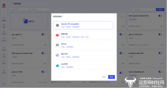 模型导入类别新增OCR模型及GUI模型。目前平台已支持包括OpenAI-API-compatible、联通元景、Ollama、通义千问、火山引擎(豆包)等多个开源模型,覆盖LLM、Embedding、Rerank、OCR、GUI等全类型模型,实现异构模型的无缝切换与统一调度,为企业提供灵活的模型选择空间。