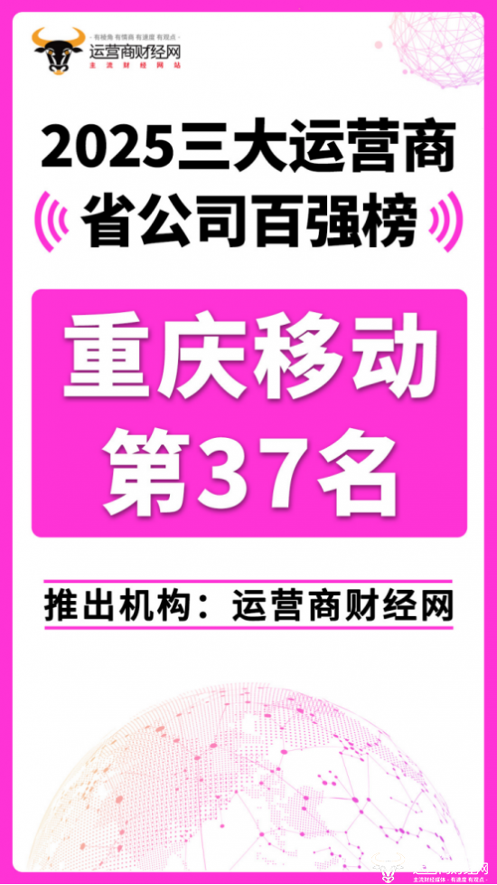 日前,运营商财经网重磅推出“2025三大运营商省公司百强榜”!重庆移动位列总榜第三十七名。
