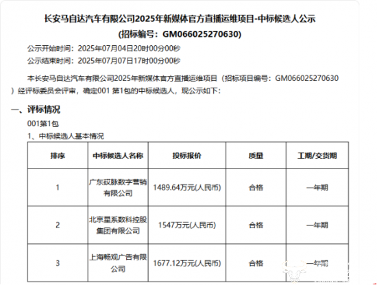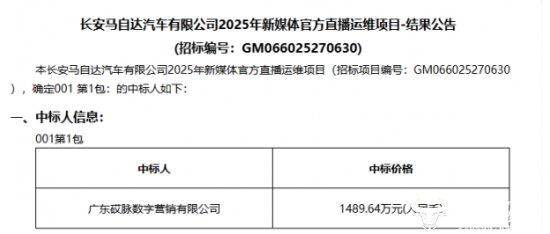 日前,长安马自达汽车有限公司发布了“2025年新媒体官方直播运维项目”的中标结果。项目预算多少?哪家企业成功中标?本次运营商财经网试图揭秘。