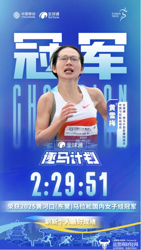 10月19日,2025黄河口(东营)马拉松激情开跑。中国马拉松运动员黄雪梅延续火热状态,以2小时29分51秒的强势表现夺冠,成功突破“230”大关,并刷新个人最佳成绩,进一步巩固其“大众马拉松一姐”的地位。作为“全球通·逐马计划”星播团成员,黄雪梅的此次折桂助力星播团实现新赛季前四场赛事冠军的包揽。四连冠的佳绩,不仅展现了星播团成员的专业魅力,更使他们成为赛中备受瞩目的焦点,让榜样力量闪耀东马赛道。