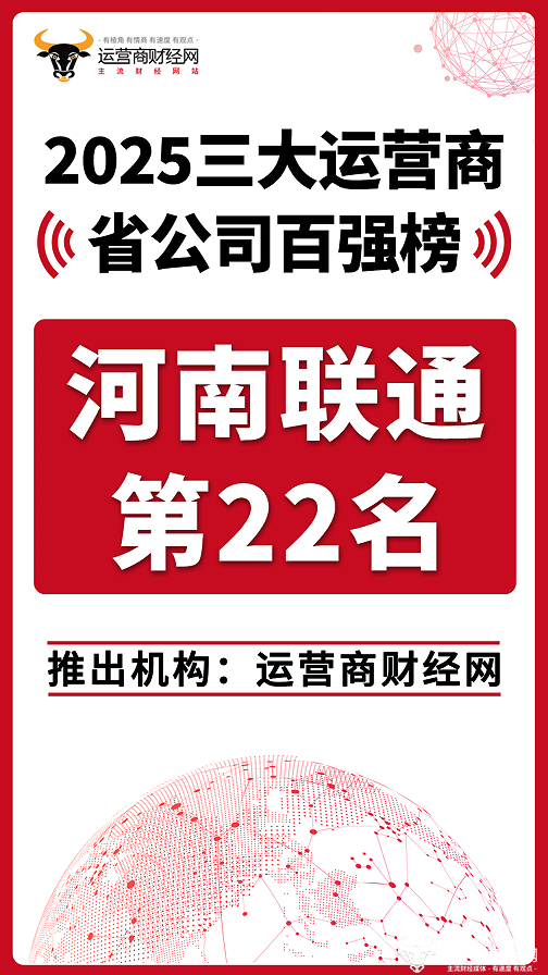 据了解,根据前不久推出的“2025三大运营商省公司百强榜”显示,河南联通位列第22名。