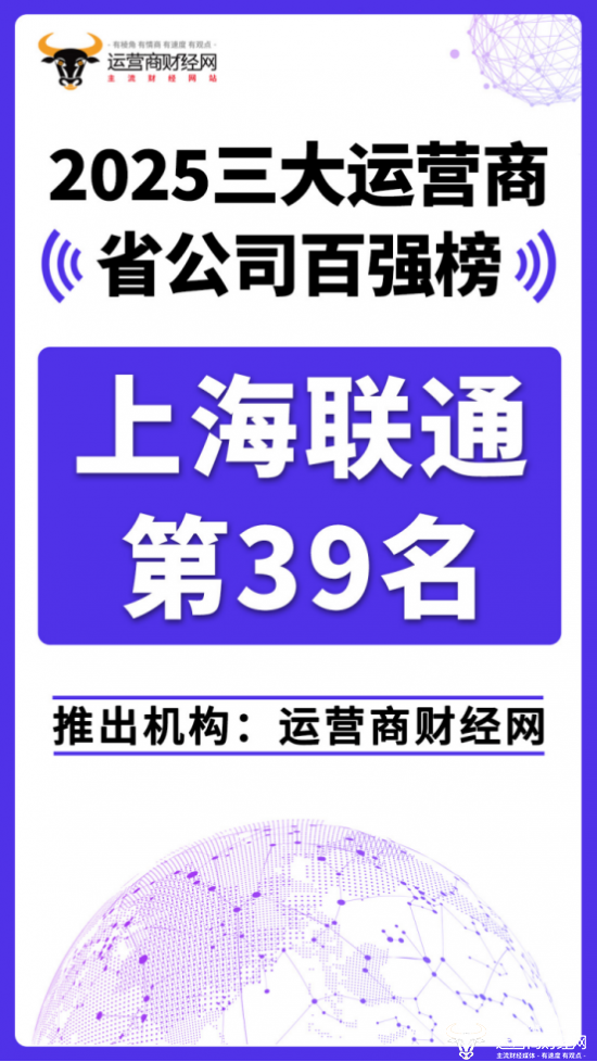 日前,运营商财经网重磅推出“2025三大运营商省公司百强榜”!上海联通位列总榜第三十九名。其年营收突破160亿元,在集团内部排名位居前列。