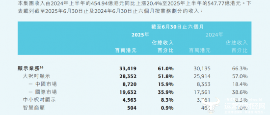 从营收方面来看,大屏幕显示上半年总营收为283.52亿港元,占总收入51.8%。其中,中国市场营收为87.20亿港元,占总收入15.9%,较去年同期营收增加,但占总营收比有所收窄。