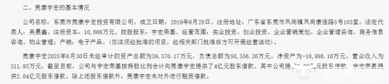 近日,康佳集团发布公告,其参股公司东莞市莞康宇宏投资有限公司出现股东借款逾期情况。公告显示,莞康宇宏2025年6月30日未经审计的资产总额为3.94亿元,负债总额为5.04亿元,净资产为-1.1亿元,已陷入资不抵债。
