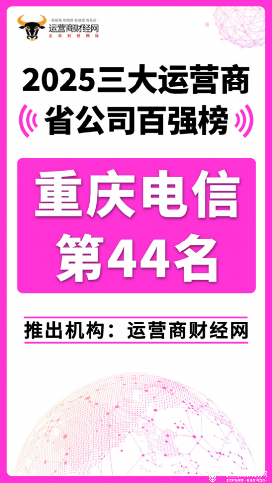 日前,运营商财经网重磅推出“2025三大运营商省公司百强榜”!重庆电信位列总榜第四十四名,在集团内部排名靠前。