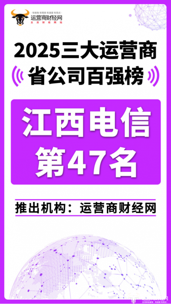 日前,运营商财经网重磅推出“2025三大运营商省公司百强榜”!江西电信位列总榜第四十七名,其年营收接近130亿元,在中国电信内部位列中游。