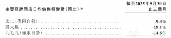 近日,九毛九发布第三季度营运表现公告,公告显示,公司三大品牌同店日均销售额均有所下降,不知行政总裁何成效怎么看待此次营运表现。