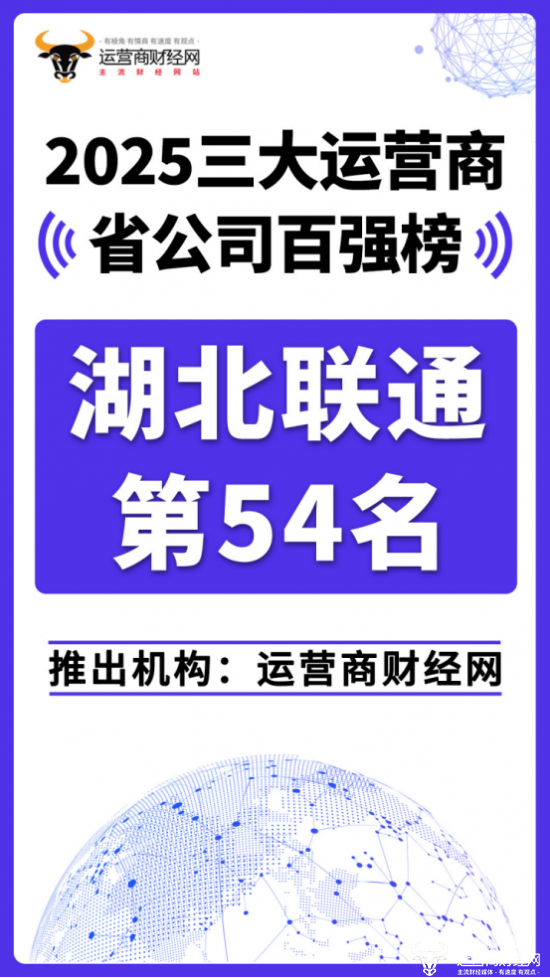 日前,运营商财经网重磅推出“2025三大运营商省公司百强榜”!湖北联通位列总榜第五十四名。在中国联通省公司中属于中等规模,位列集团内中上游,但在中国联通南方省公司中属于规模较大的。