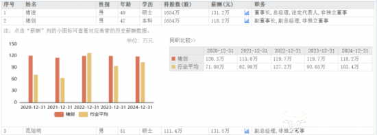 而褚剑2024年薪酬为118.2万元,相较于2023年的119.7万元,下降了1.5万元,是公司三位副总经理中唯一一个降薪的,比副总经理范旭明低了13.3万元,比哥哥褚浚低了13万元。值得一提的是,东方财富网显示,截至目前,褚剑持有公司股份1654万股,与哥哥褚浚持平。