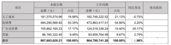 而在公司业绩上涨时,其销售费用也在增长。新希望乳业上半年销售费用为9.08亿元,同比增长了4.96%,其中广告宣传费同比增长25.17%至1.56亿元,促销费同比增长2.20%至4.84亿元。