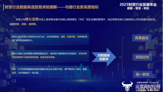 当前财资行业面临应用系统多元、数据库需求多样、国产化替代改造难度大、成本高等挑战,而财资核心业务与银行业务高度相似,对数据库的强一致性、高稳定性、高兼容性要求严苛。