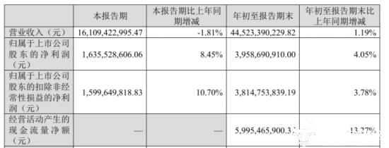 而公司第三季度财报显示,双汇发展前三季度实现营业收入445.23亿元,同比增长1.19%,归母净利润为39.59亿元,同比增长4.05%,营收和利润双双增长。其中第三季度营业收入为161.09亿元,同比下降1.81%,而归母净利润同比增长8.45%至16.36亿元。