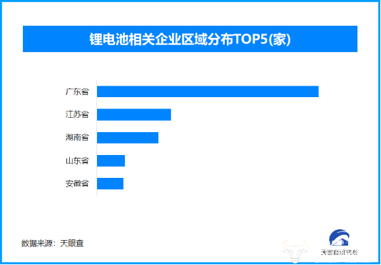 天眼查专业版数据显示,截至目前我国现存在业、存续状态的锂电池相关企业超2.9万家。从区域分布来看,广东省、江苏省、湖南省锂电池相关企业数量位居前列,三个省市数量总和超过1.68万家,占企业总数的57.5%。