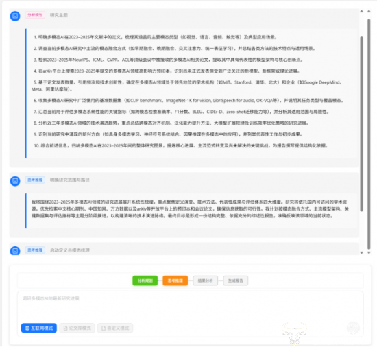 新版本在功能深化、体验升级与场景拓展等方面均有显著提升。生成内容图文并茂、报告输出格式更规范,能提供互联网模式、论文库模式、自定义模式等多种研究模式选择。从“自动分析研究主题、规划调研计划、深度搜索信息源到分析调研结果、产出研究报告”全流程仅需10-15分钟。