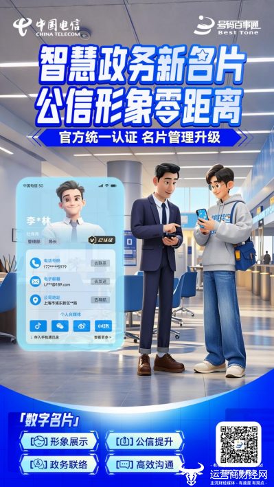 另外,数字名片可通过中国电信AI+人工双重审核机制,为企业信息赋予认证标签,避免因信息真伪难辨错过合作机会。