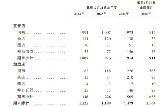 由此看来,两家企业上市之路都并不算顺利,但其门店数量都在快速扩张。招股书显示,截至2025年4月底,老乡鸡在全国58个城市拥有1564家门店,相较于2022年的1125家门店,净增加了439家门店,其中加盟店数量三年增长近6倍。