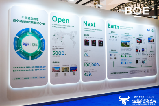 BOE(京东方)坚持技术创新的同时,深度践行可持续发展理念,此次在展会现场呈现的可持续发展成果墙也成为焦点之一。在可持续发展领域,BOE(京东方)上半年已发布行业首个可持续发展品牌“ONE”,以“开放包容(Open)、创新引领(Next)、永续生态(Earth)”为核心理念推动生态共赢;近期又重磅发布了集团可持续发展战略,让可持续发展成为BOE(京东方)的核心竞争力和“第N曲线”新增长极,推动BOE(京东方)从技术领先迈向可持续引领的新阶段。不仅如此,BOE(京东方)还将可持续发展融入企业发展的各个方面,系统规划并推进“绿色管理、绿色产品、绿色制造、绿色循环、绿色投资、绿色行动”六大行动路径,实现从研发到制造、从产品到运营的全链条绿色转型,持续赋能产业链协同发展。在企业社会责任方面,BOE(京东方)聚焦教育、环境、健康、文化领域积极开展公益项目,通过照亮成长路、BOE非遗传承人守护计划、BOE×UNESCO“科学十年”倡议合作项目等,践行对社会可持续发展的承诺。
