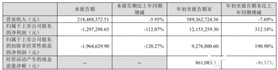 而第三季度公司营业收入2.18亿元,同比下降5.95%,而归母净利润亏损129.73万元,同比大幅下降112.07%,单季度再次出现亏损情况。