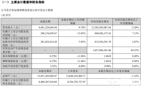 此外,同期归母净利润约为8.41亿元,同比上升7.13%。由此来看,其在第三季度利润下滑的影响并不大。