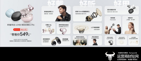 11月24日,荣耀500系列新品发布会重磅举行,正式发布荣耀亲选LCHSE耳夹式耳机2 Pro(以下简称为荣耀耳夹耳机2 Pro)。荣耀耳夹耳机2 Pro在外观设计、佩戴舒适度、音质表现、续航能力、交互体验及AI翻译等方面带来全方位越级体验,是同档位综合性能最均衡的耳夹耳机。荣耀耳夹耳机2 Pro于11月27日10:00全渠道正式开售,国补到手价466.65元。
