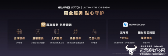 购买HUAWEI WATCH ULTIMATE DESIGN非凡大师紫金款即可获得五大尊享服务 ,其中包含购机享全球联保,2年维保、到店即享门店VIP礼遇 、2年2次免上门服务费、2年1次5折换屏和2年2次免费焕新保养服务,搭配购买HUAWEI Care+综合保障服务产品,为您提供3年2次意外保障及3年官方质保,多重守护,加倍安心;并且还限时(2026年6月30日之前)赠送保值焕新权益。权益生效之日起两年内若原设备满足保值焕新回收标准,即可享受原设备在购买时的官方建议零售价的50%折抵优惠,购买HUAWEI WATCH ULTIMATE DESIGN非凡大师同系列新机(不含本机,不含Ultimate非凡探索系列)。